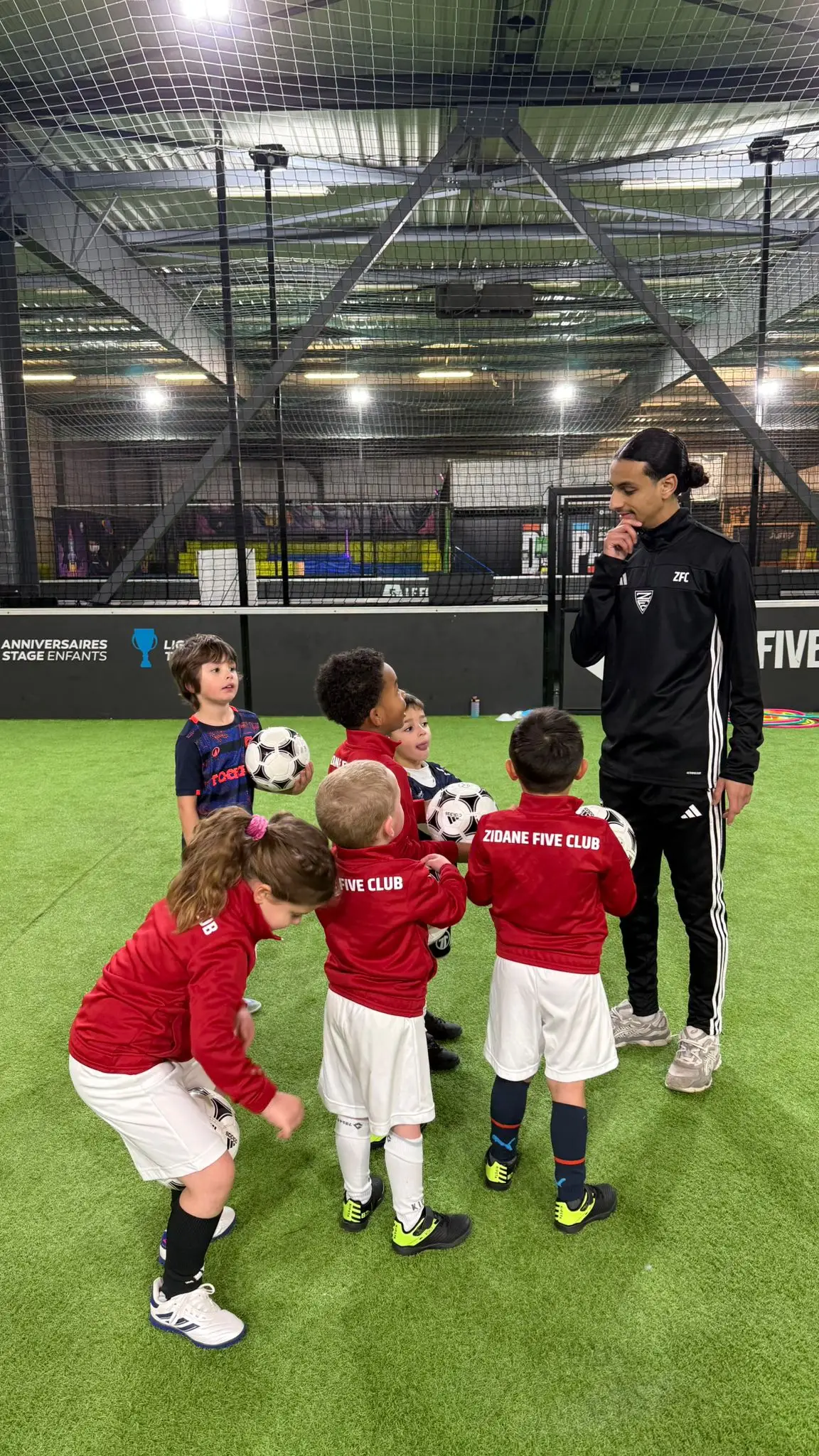 Durant toute l'année, faites profiter à votre enfant de séances 100% foot et 100% plaisir au cœur de nos installations couvertes & sécurisées, encadrées par des coachs officiels ZIDANE FIVE CLUB !